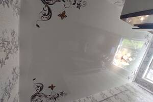 Натяжной потолок с фотопечатью в виде бабочки. Отличный выбор в каталоге присутствует множество картинок с 3D эффектом присутсвия. Изображение бабочки впишиться практически в любой интерьер. Такой рисунок помогает существенно сэкономить бюджет натяжного потолка так как вам не придется заказывать полное заполнение, изображение займет всего пару квадратных метров.
